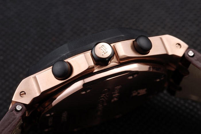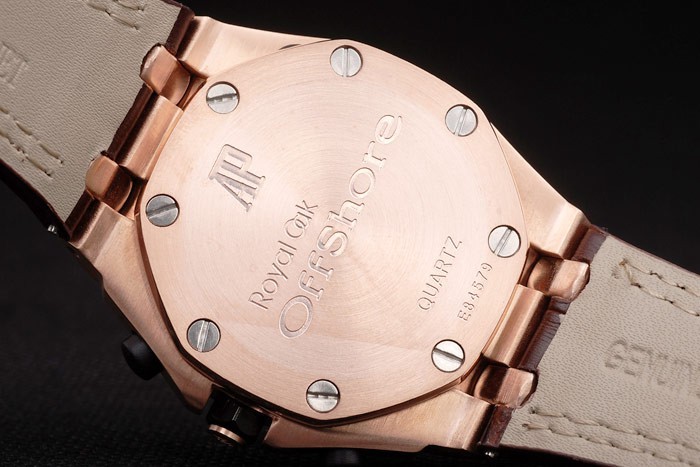 Voltar: Rose-Gold chapeado parafusado para baixo com o logotipo de Audemars Piguet e gravuras