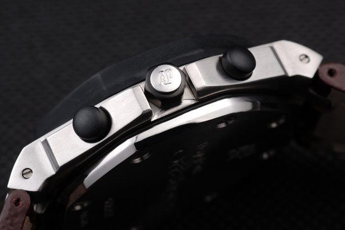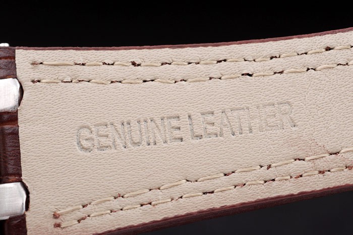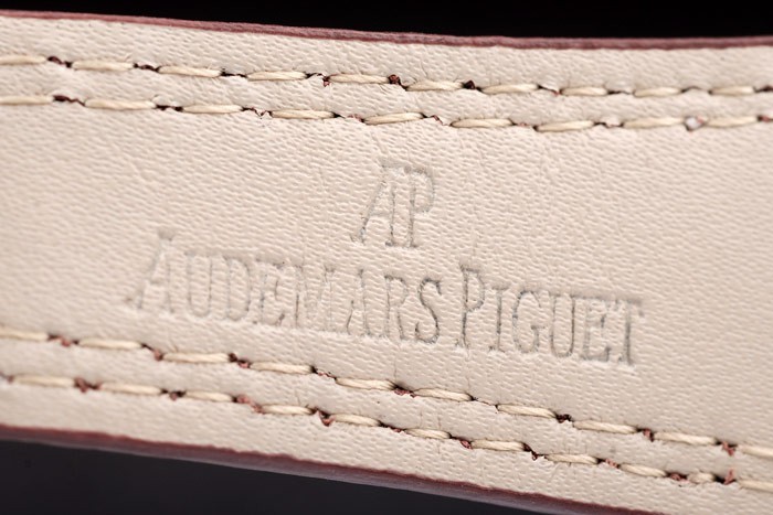 Pulseira: Calor em relevo Audemars Piguet Brown Crocodilo Cinta de couro com dupla costura branca e Audemars Piguet gravado de aço inoxidável de aço inoxidável de