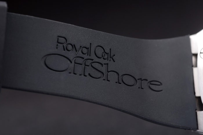 Pulseira: Audemars Piguet Royal Oak Offshore Cinta de borracha preta em relevo com Audemars Piguet gravado escovado de aço inoxidável dobra -in clasp