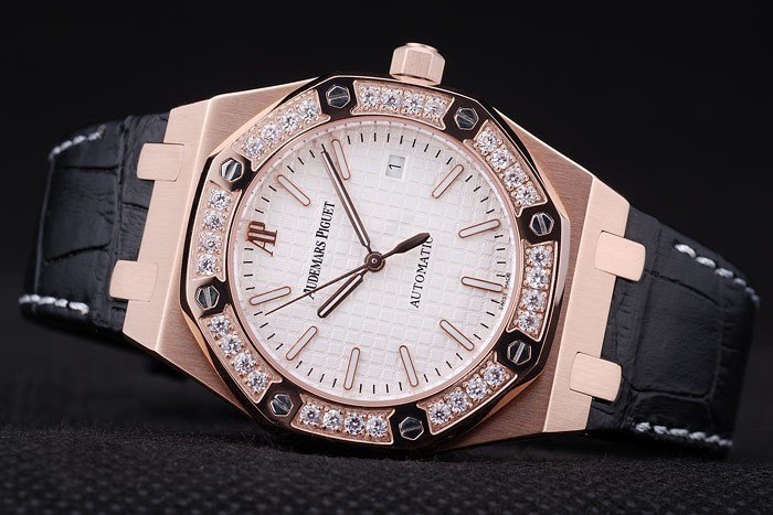 relógio: fecho de vidro: Sapphire Cristal e coroa: 18k rose-gold chapeado Coroa de corte com Audemars Piguet Logo