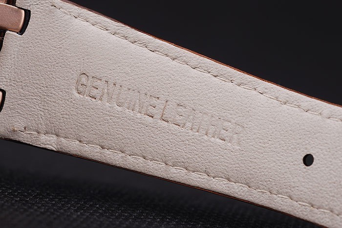 pulseira: Cinta de couro de crocodilo marrom com costura de rosca branca e calor em relevo Nome e logotipo de Audemars e logotipo e um Audemars Piguet recrido Rose-Gold Plated Flip-Sobre Gancho Clasp: Bracelet Comprimento: 240 x 25 mm