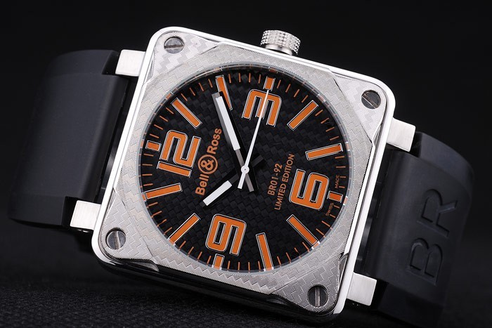 Capa de Aço Inoxidável Bracelete: Bell&Ross Logotipo e código do produto Cinta de borracha preta em relevo com fecho de aço inoxidável de gancho-fivela