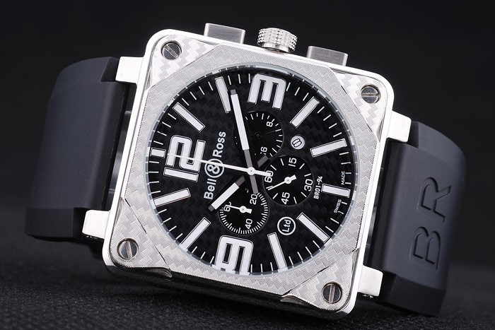 Pulseira: Calor Gravado Bell&Ross Logo e Código de Produto Cinta de borracha preta com Br BR Inscrito escovado de aço inoxidável Gancho-fivela Clasp