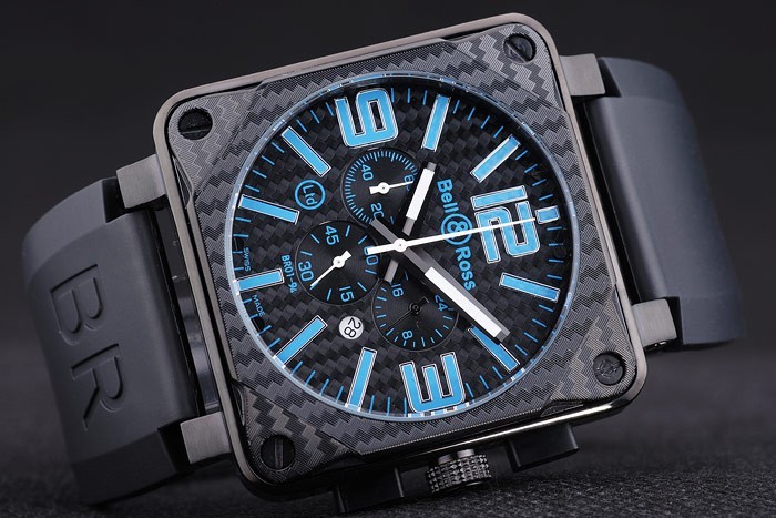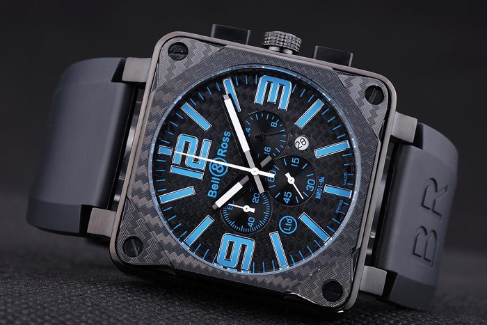 pulseira: Calor em relevo Bell&Ross Logo e Código de Produto Black Borracha alça com ion – fecho de fivela de gancho de íon