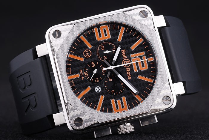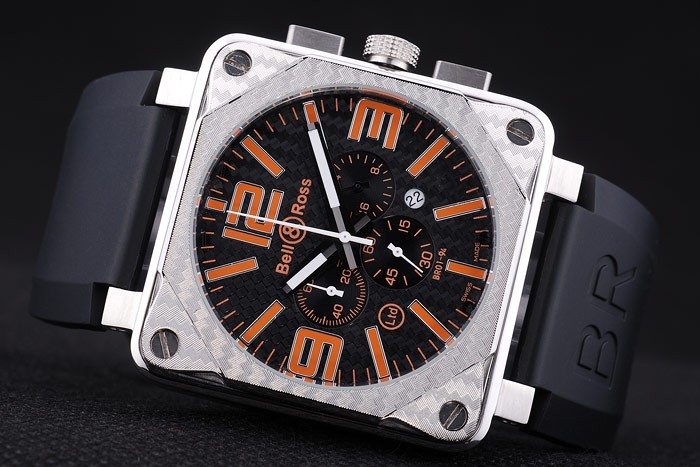 Pulseira: Calor Gravado Bell&Ross Logo e Código de Produto Cinta de borracha preta com Br BR Inscrito escovado de aço inoxidável Gancho-fivela Clasp