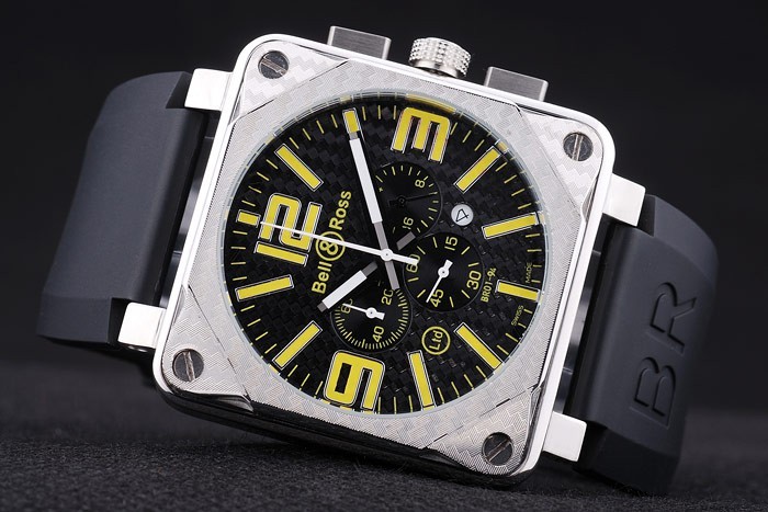 Pulseira: Calor Gravado Bell&Ross Logo e Código de Produto Cinta de borracha preta com Br BR Inscrito escovado de aço inoxidável Gancho-fivela Clasp
