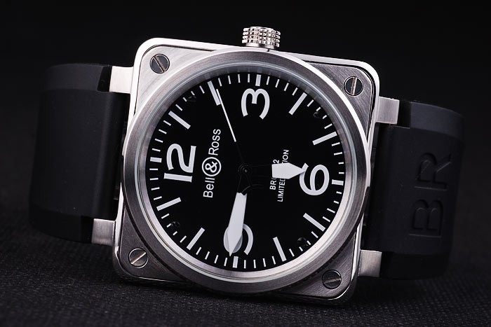 Voltar: aço inoxidável escovado parafusado de volta com Bell&Ross inscrições