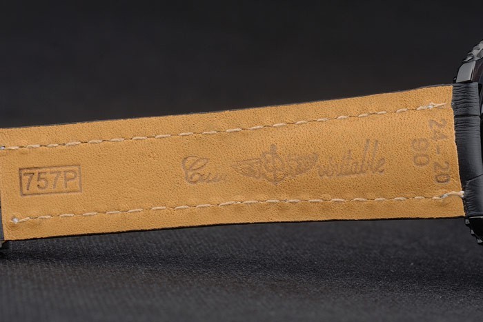 caso: Caso de aço inoxidável de íon – pulseira: Breitling Heat Gravado Black Crocodile Strap de couro com costura de linha branca e logotipo gravado íon de aço inoxidável de aço inoxidável fechado