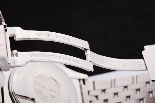 Pulseira: banda de aço inoxidável sólida de 440 graus. Cada relógio Breitling Chronomat exibe o logotipo Breitling gravado e os selos de aço inoxidável suíços.
