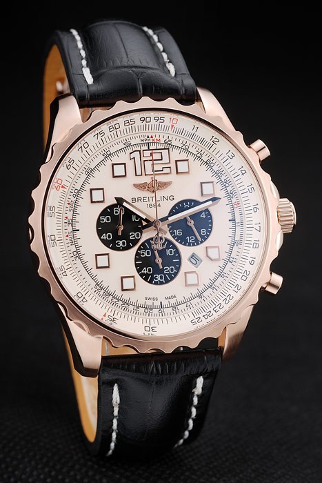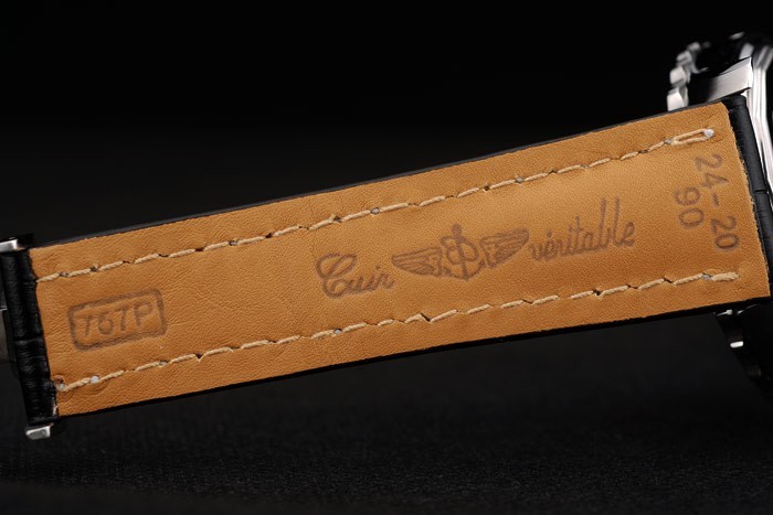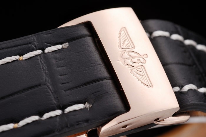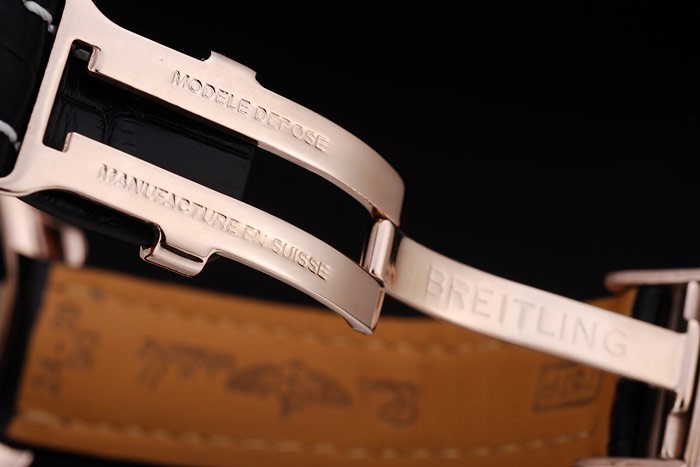 Pulseira: Calor em relevo Breitling Nome e logotipo Black Crocodile Strap de couro com fio branco stiching e gravado logotipo rose-gold chapeado de fecho de folhas de bracelete: 210 x 24 mm de ouro Coroa de corte chapeado Tipo de banda: Pele