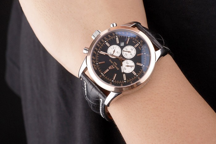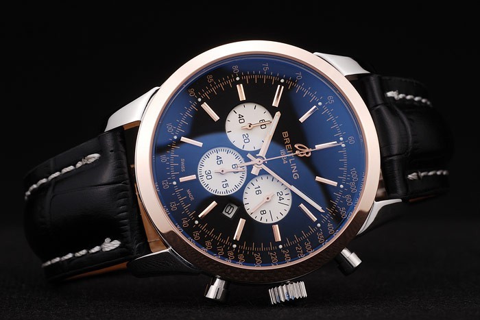 Este relógio tem vidro ar. A cor do rosto aparecerá cores diferentes, dependendo de como a luz cai no iTBack: Snap-in de aço inoxidável de volta com a inscrição Breitling