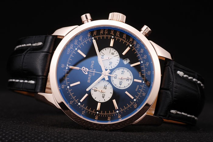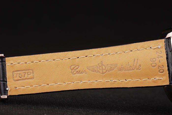 Pulseira: Calor Embossed Breitling Black Crocodile Strap de couro com costura de rosca branca e um logotipo Breitling gravado Fold-in Rose-Gold Clasp Chapelet Comprimento: 210 X 24 mm
