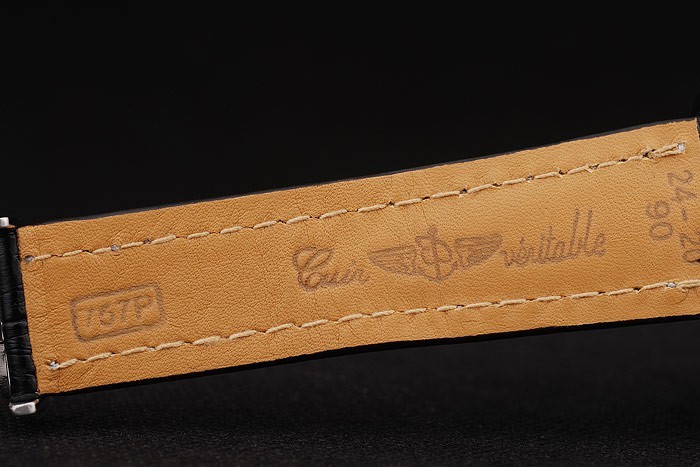 Pulseira: Calor gravado Breitling Black Crocodile Strap de Couro com costura de linha branca e um logotipo Breitling gravado fold-in fecho de aço inoxidável