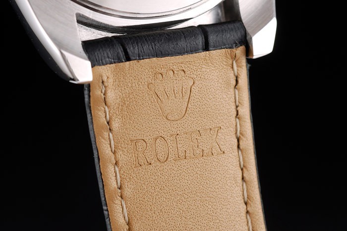 Pulseira: Calor Rolex Gravado Cinta de couro de crocodilo preto com fecho de implantação de aço inoxidável gravado com logotipo Rolex na parte superior