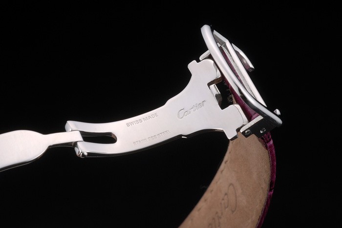Pulseira: Cartier Heat Roxo Correia de couro de crocodilo com fivela de aço inoxidável polido dobrável fivela