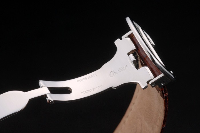 Capa de aço inoxidável: Pulseira: Cartier calor em relevo Correia de couro de crocodilo com fivela de aço inoxidável polido dobrável fivela