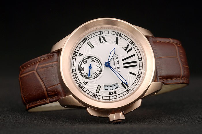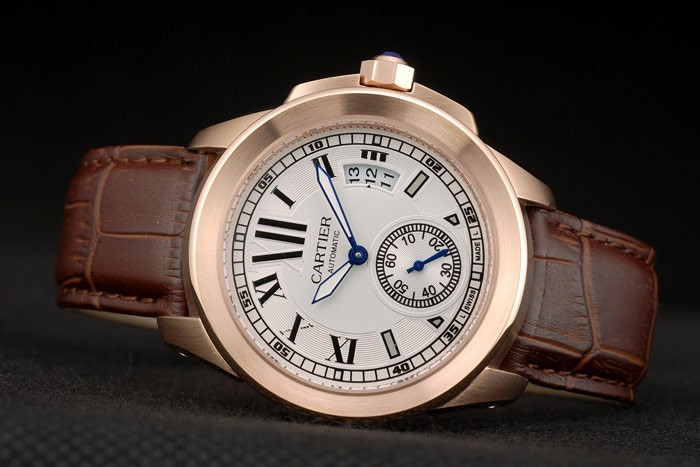Caso Banhado 18k Pulseira: Cartier Heat Gravado Craque de Couro de Crocodilo Brown com Rose Gold-Plated Fivela Clasp