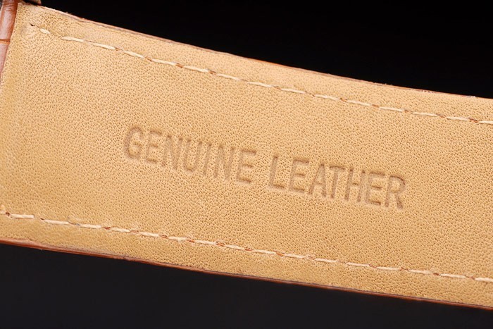 pulseira: Calor Embossed Cartier Stamped Light Light Castanho Cinta De Couro Crocodilo Com Fecho Escondido De Aço Inoxidável Escovado