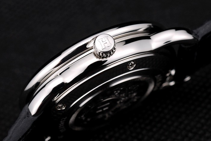 Voltar: Aço inoxidável parafusado de volta com o logotipo da Hermes e gravura de insígnias