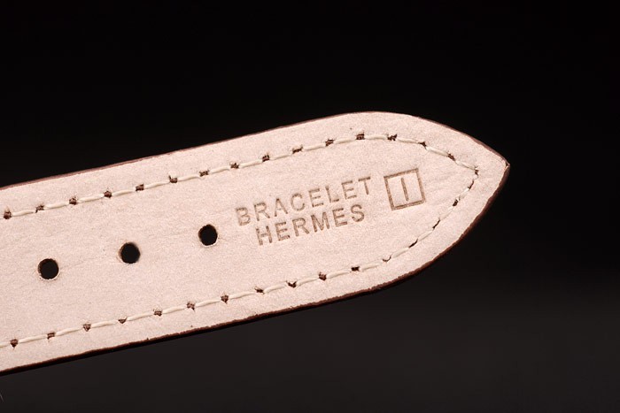Capa de aço inoxidável: Pulseira: couro marrom Alça com pulseira de carimbo de calor Hermes e Hermes gravado polido polido de aço inoxidável gancho-fivela fechado