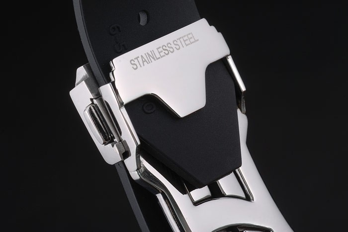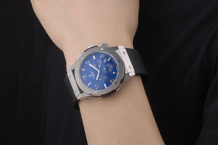 Capa Aço Inoxidável: Pulseira: Hublot Calça de borracha preta com nervuras com nervuras de Geneve com Hublot Geneve gravado escovado escovado empurrando o fecho de gancho de push