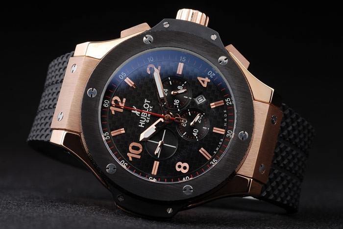 Pulseira: Texturizado Borracha de borracha texturizada com fecho de gancho de botão de rosas-ouro e gravuras Hublot