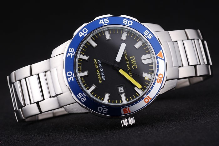 Bezel: azul esmaltado polido aço inoxidável bezel com marcadores de minuto