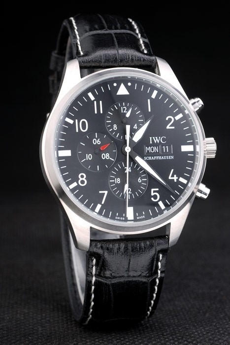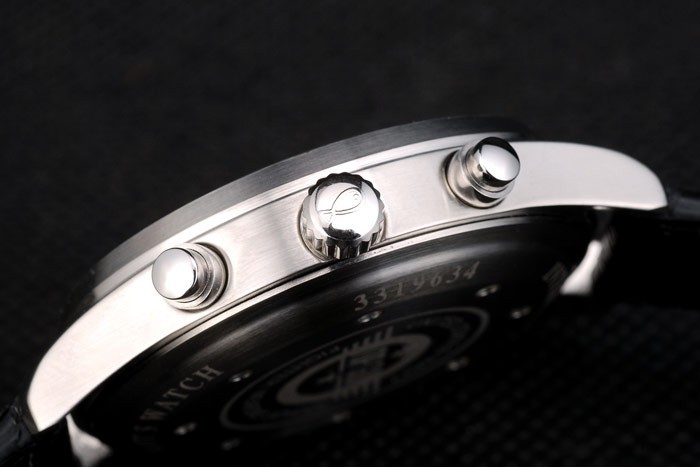 Clasp de relógio: fecho de aleta e coroa: polido de aço inoxidável coroa de aço inoxidável com IWC logotipo gravura e duas coroas de botão redondo menor em ambos os lados dele Espessura do caso: 11 mm