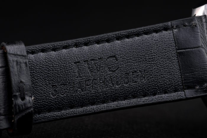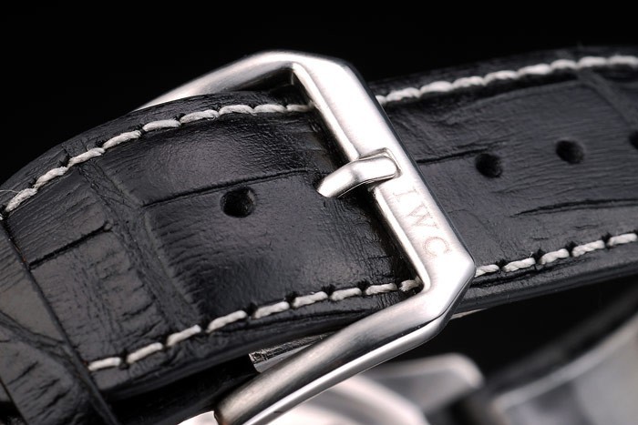pulseira: IWC Schaffhausen Calça de couro de crocodilo preto em relevo com costura de rosca branca e IWC Inscreva o fecho de aço inoxidável de aço inoxidável