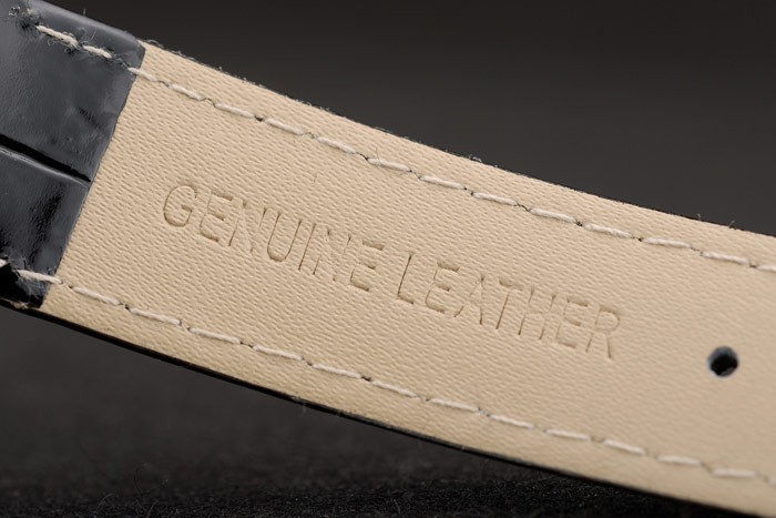 Bezel: Bezel de aço inoxidável polido Tipo de banda: Pele Diâmetro: 36 x 36 mm