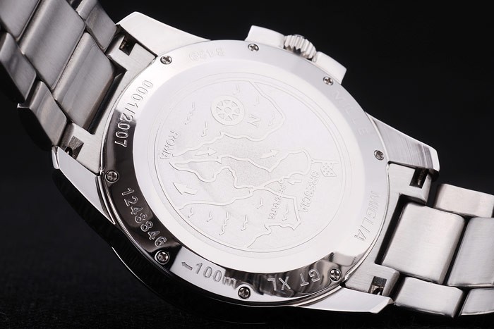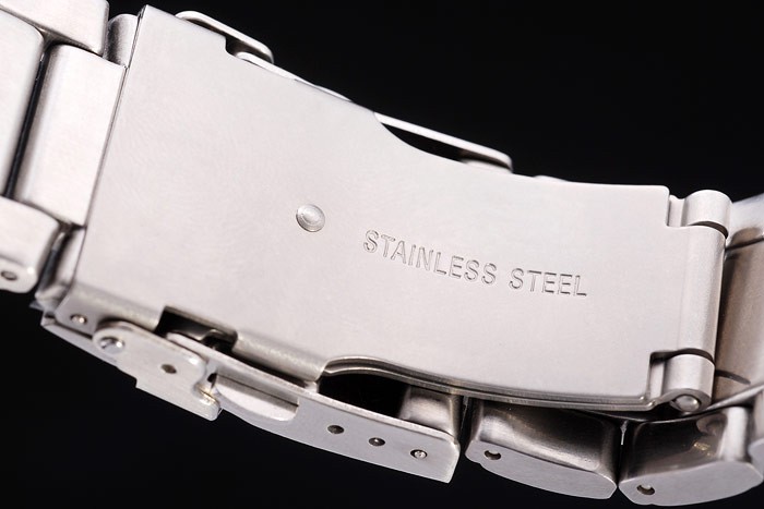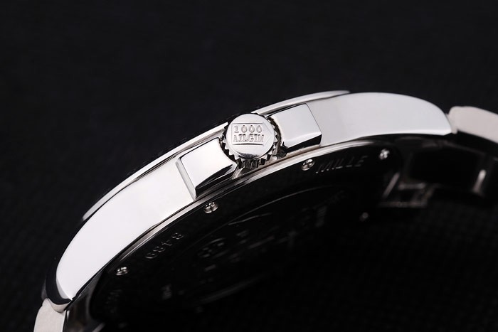coroa: coroa de aço inoxidável polida gravada com coroas retangulares de botão de pressão em ambos os lados da espessura do caso: 12 mmGênero: homens