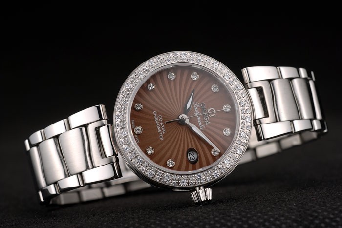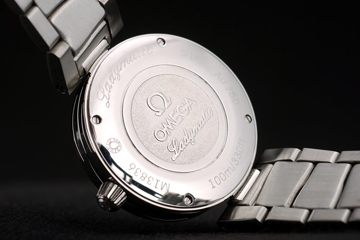 Voltar: Aço inoxidável polido parafusado de volta com o ômega Ladymatic Gravura
