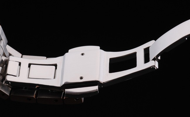 Bezel: 18k Rose Gold Bezel Tipo de banda: Aço inoxidável