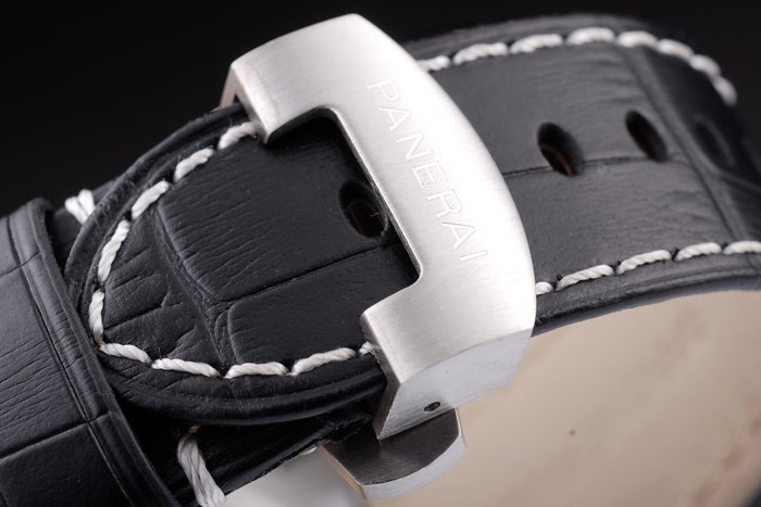 pulseira: Cinta de couro de crocodilo preto com costura branca e calor em relevo workshops Panerai Itália selo e polido de aço inoxidável dobrável fechar o comprimento do gancho: 215 x 24 mm