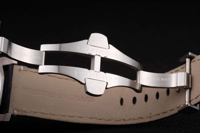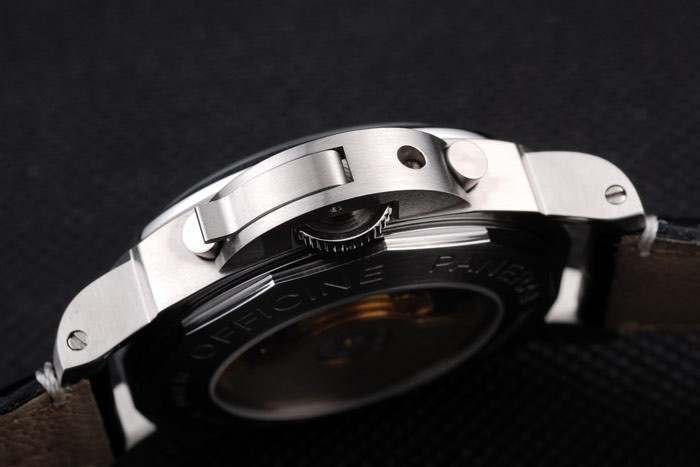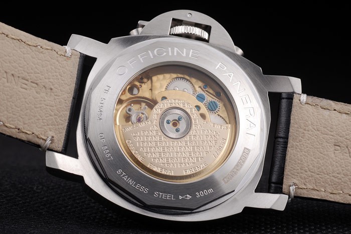 Este relógio tem vidro ar. A cor do rosto aparecerá cores diferentes, dependendo de como a luz cai no uTBack: Snap-in escovado de aço inoxidável de volta com workshops panerai gravação