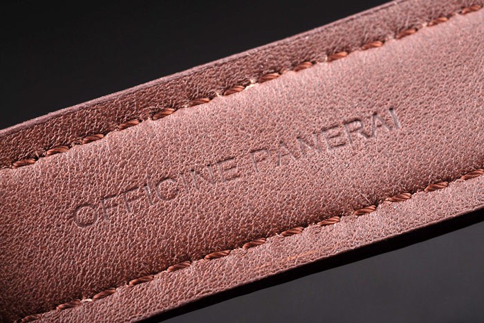 Pulseira: Curta de couro marrom com oficinas de calor em relevo Panerai Itália Selo e escovado Gancho de aço inoxidável – fecho de fivela de aço inoxidável com Panerai Gravura
