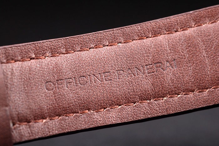 pulseira: cinta de couro marrom escuro com calor em relevo workshops Panerai Itália carimbo e escovado Gancho de aço inoxidável – fecho de açúcar com Panerai Gravura