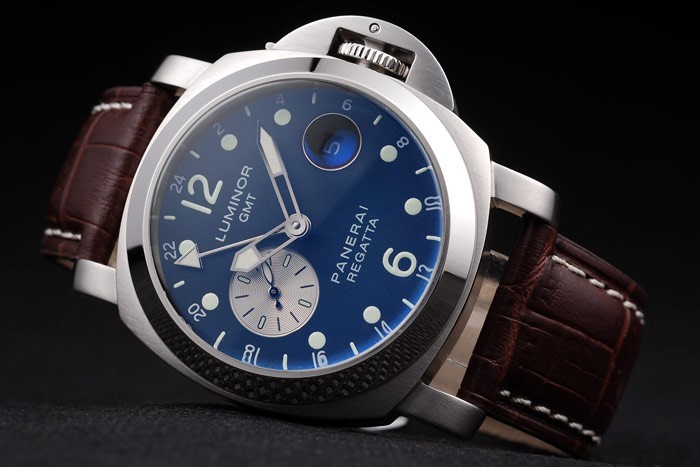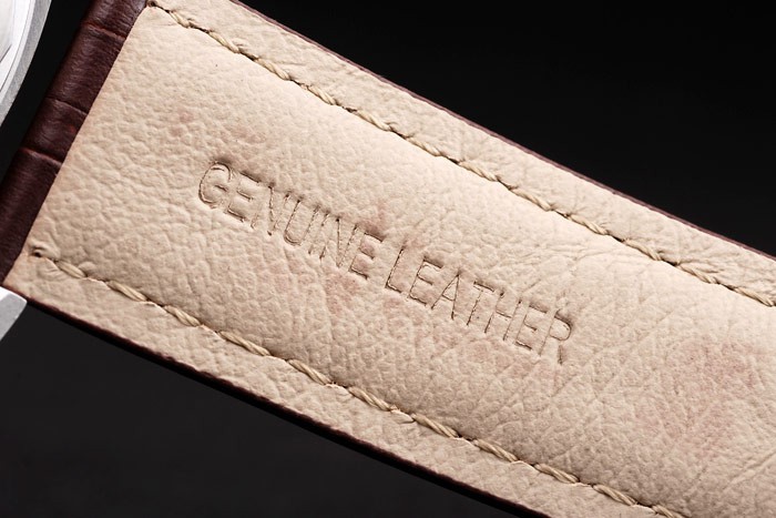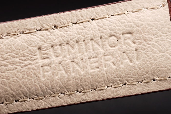 Pulseira: Cinta de couro marrom com costura branca e calor em relevo Luminor Panerator Selo e polido Gancho de aço inoxidável – fecho de gancho -buckle com Panerai gravura
