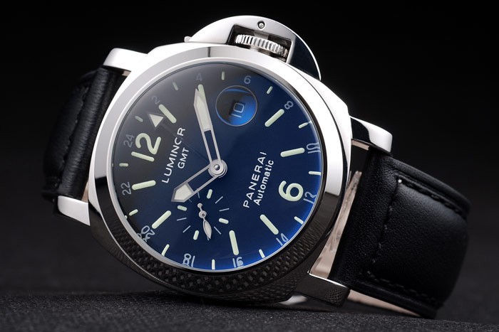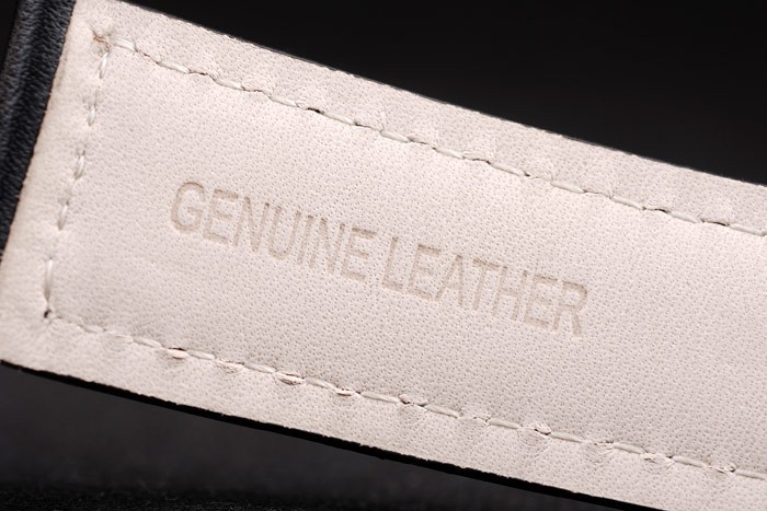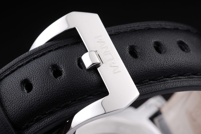 Pulseira: Cinta de couro preto com calor em relevo Luminor Panerator selo e polido fecho de aço inoxidável de aço inoxidável com gravação de Panerai