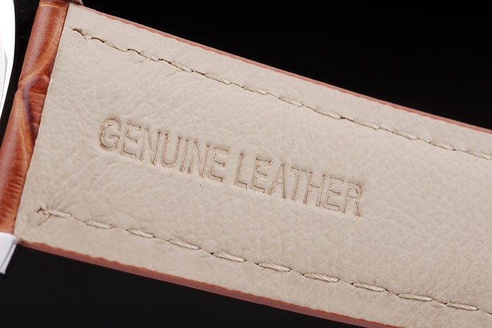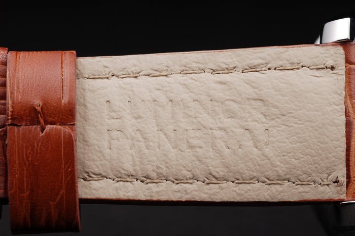 Pulseira: Cinta de couro marrom com costura branca e calor em relevo Luminor Panerator Selo e polido Gancho de aço inoxidável – fecho de gancho -buckle com Panerai gravura
