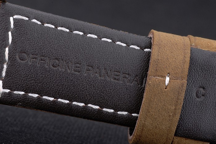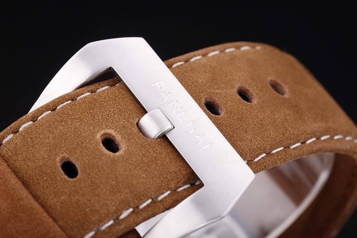 Caso de aço inoxidável: Pulseira: Calor em relevo Workshops Panerai Itália carimbado cinta de couro de camurça tan com fecho de aço inoxidável de gancho-fivela