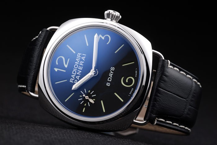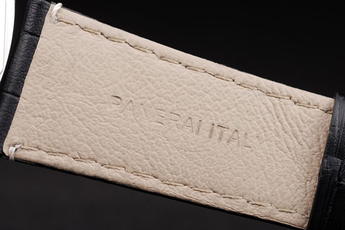 pulseira: Black Crocodile Strap de couro com costura branca e calor em relevo workshops Panerai Itália carimbo e escovado fecho de aço inoxidável de aço inoxidável com panferai gravura