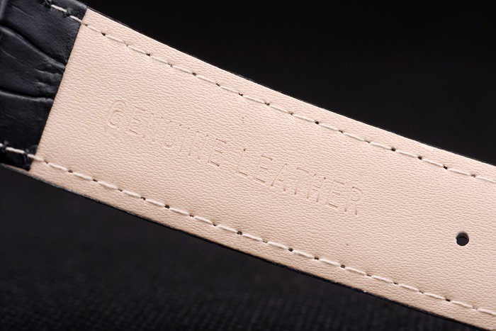 pulseira: Cinta de couro de crocodilo preto com calor gravado Patek Philippe Selo e polido Gancho de aço inoxidável – fecho de fivela de aço inoxidável com Patek Philippe Gravura