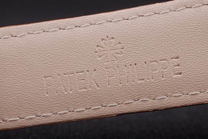 pulseira: Cinta de couro marrom com Patek Philippe Stamp e uma rosa de ouro rosa em fecho