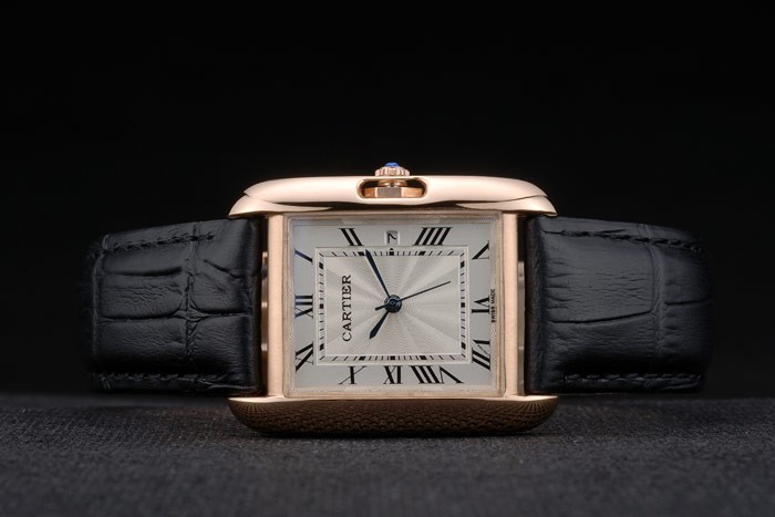 caso: 18k Rose-Gold Banhado Caso de aço inoxidável : Cartier Calor Embossed Black Crocodile Strap de Couro com 18k Rose-dourados Banhado Fest-in Clasp Buckle