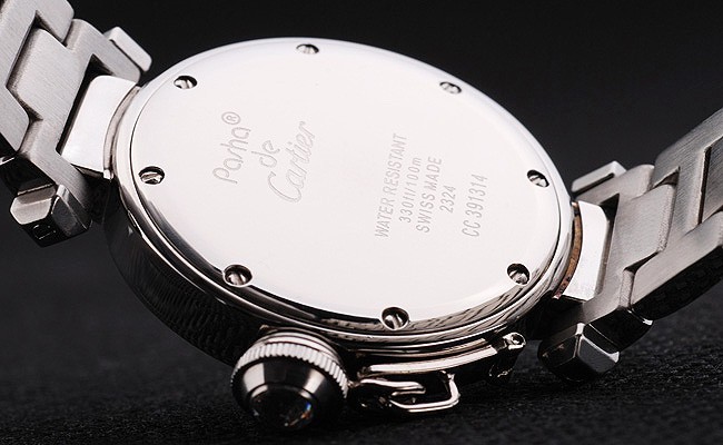 Voltar: Aço inoxidável parafusado caso com inscrições de Cartier
