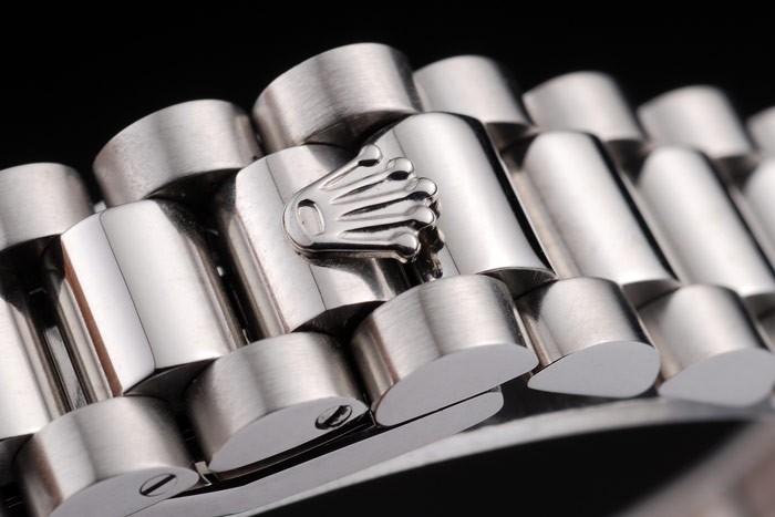 Caso de aço inoxidável: Bracelet: Bracelete de elo de aço inoxidável escovado e polido com Rolex Gravado fecho escondido exibindo o logotipo Rolex