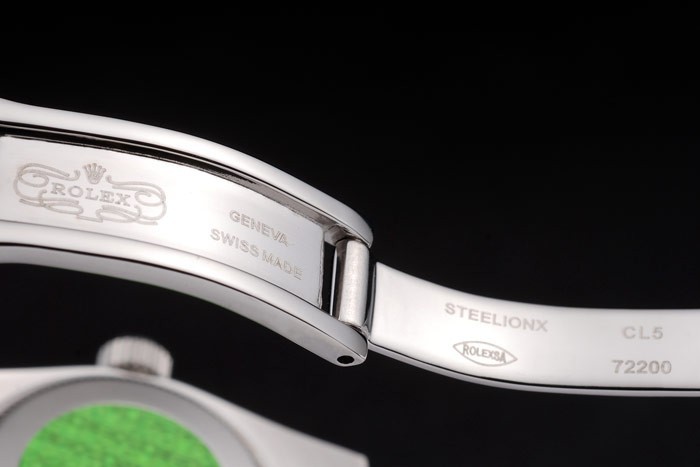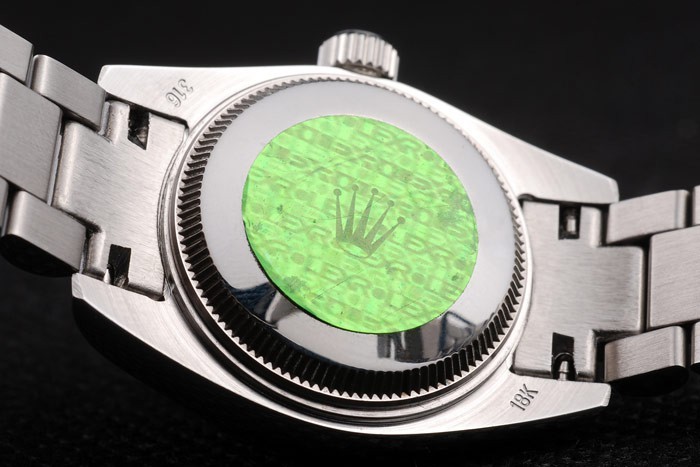 Voltar: caso de aço inoxidável de volta com o selo verde do logotipo do Rolex