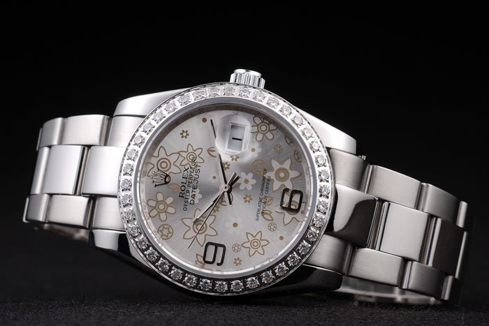 Caso de aço inoxidável: Bracelet: Bracelete de link de aço inoxidável escovado com Rolex gravado dobrável fecho de implantação exibindo o logotipo Rolex