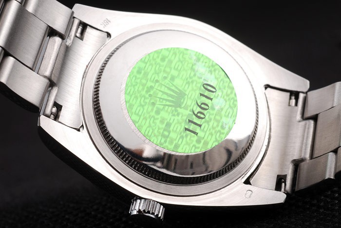 Voltar: caso de aço inoxidável de volta com o selo verde do logotipo do Rolex